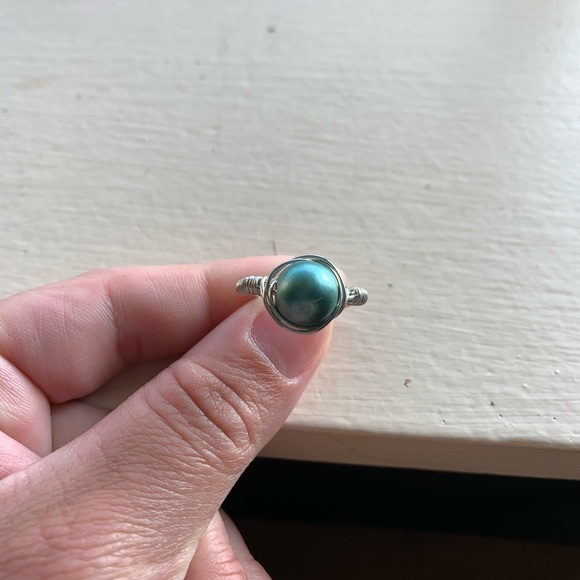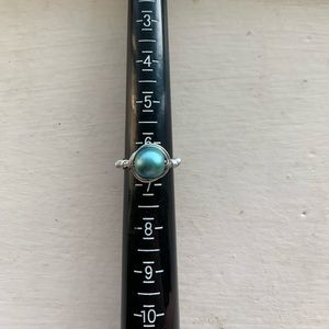 Silver colored wire and large teal bead Handmade Size 6.5