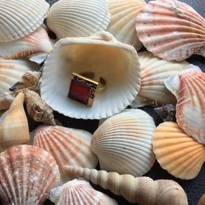 Handmade Geometric Shape Ring; Lovely adjustable Red Brass plated ring