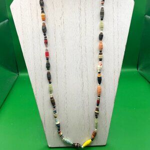 Handmade Rolled Paper Bead Necklace Long Continuous Strand Upcycled Bohemian