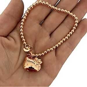 Handmade rose gold beaded ball hello kitty locket bracelet