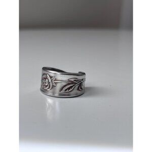 Handmade Rose Spoon Ring - Size 7 1/4 Floral Silverware Wrap Band Silver