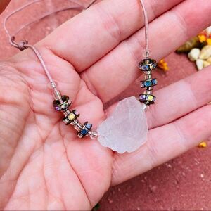 Handmade Rough Clear Quartz Leather Necklace With Crystal Rondel’s