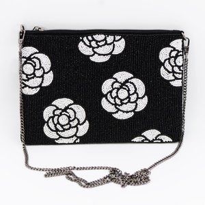 Handmade Round seedbead flower pattern pouch/ crossbody bag