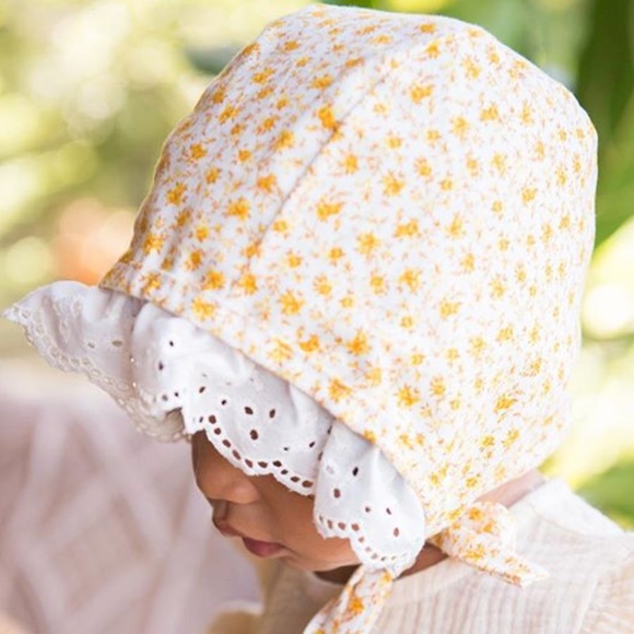 Size 0-6 months Ruffle Brim Bonnet from Orchard & Cove. This is a handmade shop.