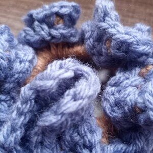 Soft, cozy, and full of texture, this handmade ruffled crochet scrunchie in heather dusty blue is the perfect accessory to elevate any hairstyle. Its gentle stretch makes it ideal for ponytails, messy buns, or worn as a stylish wrist accessory.