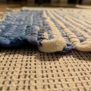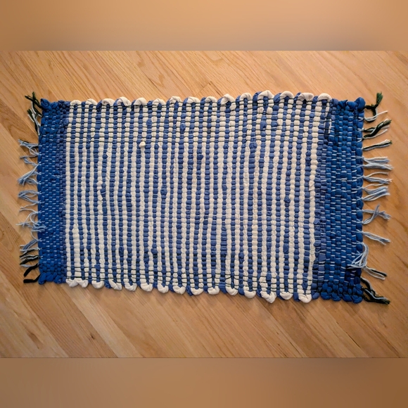 Handmade rug with recycled fabrics. Soft & comfy. 33.5" x 20" H