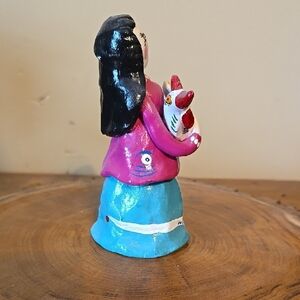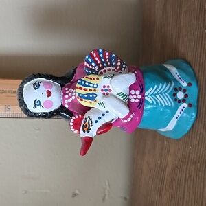 Add a touch of whimsy to your home with this vibrant figurine. Featuring striking blue and pink accents, it's a charming piece for any decor.