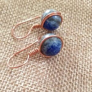 Copper-Wrapped Lapis Lazuli Globe Earrings - only this one pair available!