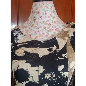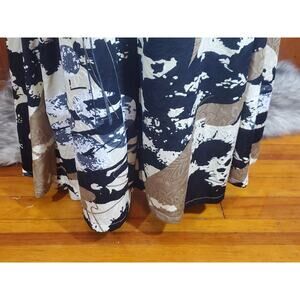 Handmade S Long Sleeve Round Neck Abstract Print Maxi Dress Brown Black Cream