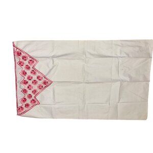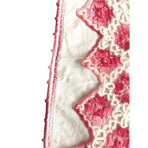 Enhance your bedroom decor with this set of handmade pillowcases featuring intricate crochet floral edges, adding a touch of elegance and charm to any space. Small tear on one edge of the pillowcase.