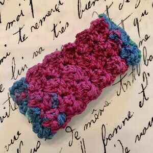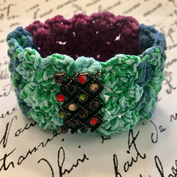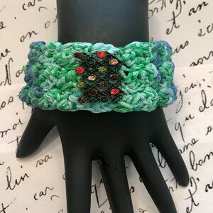A beautiful slip-on cuff ~ one size fits most ~ crocheted with blue and green variegated yarn
