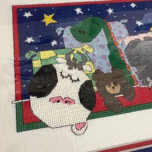 This handmade Sandra Boynton animal cross stitch art is professionally framed, making it a perfect addition to any home decor. Its playful design brings a touch of whimsy and charm to any space, ideal for animal lovers and cross stitch enthusiasts.
