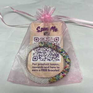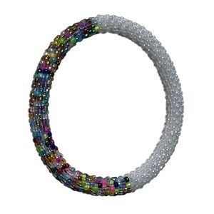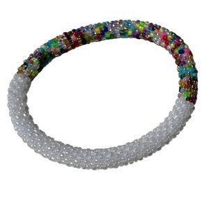 Add a pop of color to your outfit with this vibrant beaded bracelet. Featuring a mix of white and multicolored beads, this accessory is perfect for any occasion.