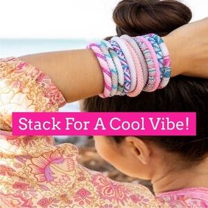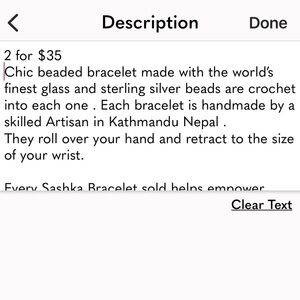 Chic beaded bracelet made with the world’s finest glass and sterling silver beads are crochet into each one . Each bracelet is handmade by a skilled Artisan in Kathmandu Nepal .