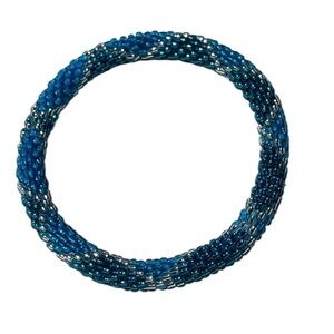 Sashka Bracelets are made with the worlds finest glass and sterling silver beads . They are handmade by skilled Artisan in Kathmandu Napel . Bead by bead they are crocheted. They roll over your hand and retract to your wrist.