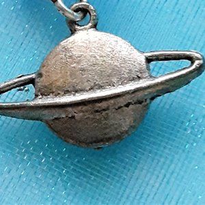 I am fascinated with the universe and all that's in it. I found these planetary components online and decided to make two pair of earrings. The beads on this pair are a cobalt blue, the other pair has blue and purple iridescent beads. These are wire-wrapped earrings made with silver tone wire.