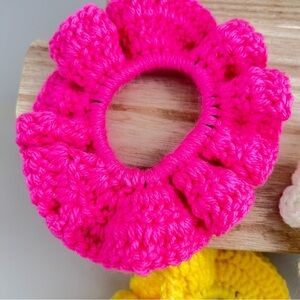 Handmade Scrunchies Crochet Set of 3 Yellow Pink White