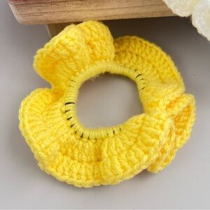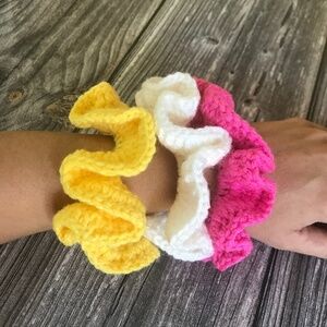 Handmade Hair Accessories Crochet Scrunchies Set of 3 Yellow Pink White