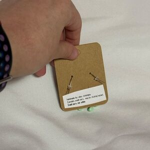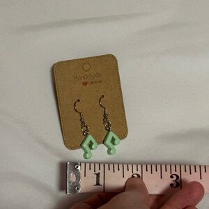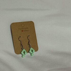 These are handmade by me Seafoam Green Music Note Earrings. The seafoam green music note is a little under an inch high and a little under an inch wide. Please refer to photos for more accurate measurements and sizing. The earrings are made out of hypoallergenic iron and resin. They feature a rubber stopper on the back. Please refer to the video to see all of the beautiful details of these earrings.