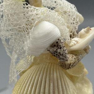 Handmade Seashell Art Figurine Bride Doll Folk Art Flower Girl Nautical Kitschy