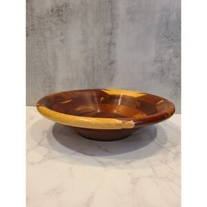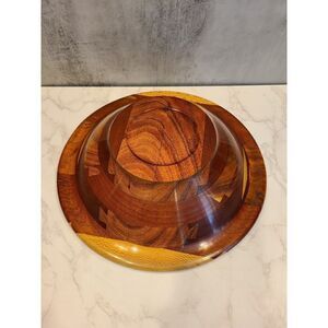 Handmade Serving Fruit Bowl Oak , Cherry, Walnut Patchwork Vintage 1990s Signed