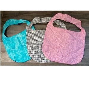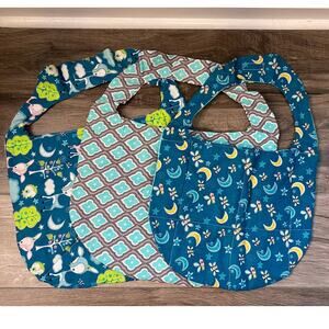 Handmade Set of 3 Childrens Baby Bibs Hook Loop Closure Large Fabric Quilted