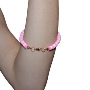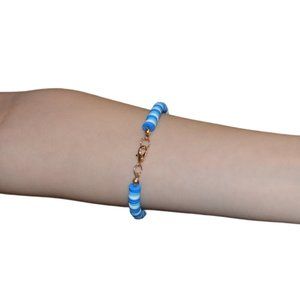 Handmade Set/3 Clay Rubber Beads Elastic Kids Bracelet Blue Pink 3" length/half
