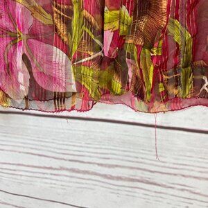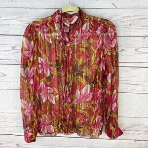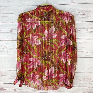 Handmade Sewn Women's Red Foral Print Button Down Long Sleeve Shirt Size M