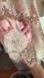 It features a beautiful mix of vintage-style materials, including intricate lace, delicate tulle, and soft velvet.