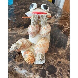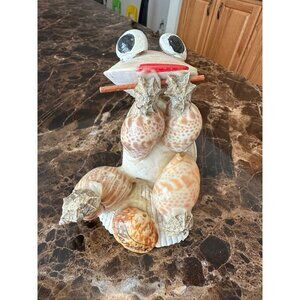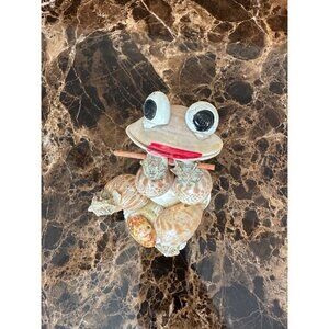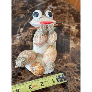 Handmade Shell Frog Figurine With Googly Eyes & Stick Sea Shells StarFish Beach