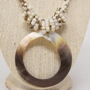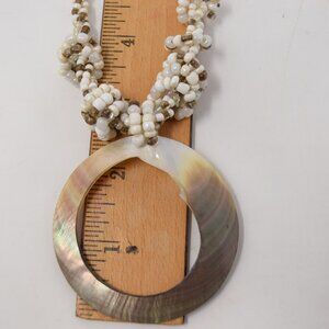 Shell Pendant with Multi Strand Seed Bead Necklace