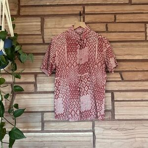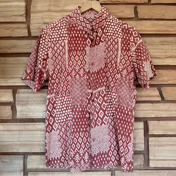 Light cotton short sleeve men’s shirt. Reddish mauve and cream. Super comfortable and soft. Size M