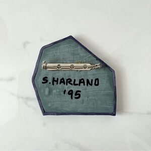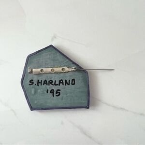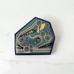 Handmade Signed Abstract Asymmetric Wooden Pin Brooch