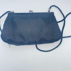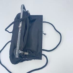 Handmade Silk Black Beaded Embellished Clasp Shoulder Evening Bag Women's Purse