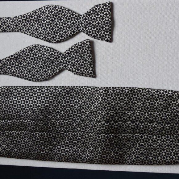 Carrot & Gibbs Handmade Silk Cummerbund and Bowtie. Worn Once. Beautifully woven black and silver silk. Absolutely Pristeen