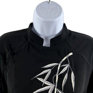 Handmade Silk Maxi S-M Black Mandarin Collar Long Sleeve Bamboo Leaf Embroidered