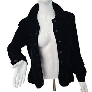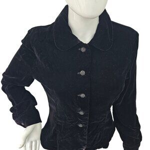 Handmade Silk Velvet Fitted Jacket Womens 6 Black Glass Button Close Top Vintage