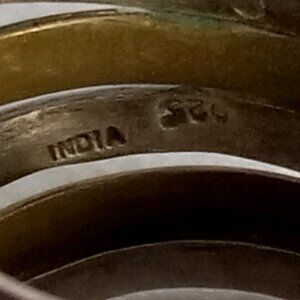 Handmade in India. 925 Silver and bronze multi-band ring. Not able to separate and well made. Amethyst Stones are large and beautiful. This ring would be perfect for any purple lover or ring lover. Size 7.