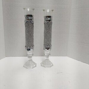 Handmade Silver Crystal Candle Holders – Tall Glam Decor Set (Set of 2)