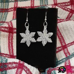 Handmade Silver Glittery Christmas Drop Snowflake Earrings