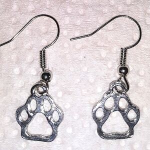 Cute Pawprint Dangle Earrings Small Silver Paw Print NEW Handmade Hand Crafted