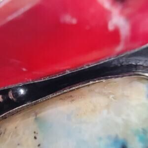 Adding a touch of rich contrast and bold elegance, two angular red jasper stones crown the design, enhancing its visual appeal and uniqueness.