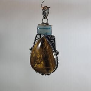 Handmade Silver Pendant With Tiger’s Eye & Rare Caribbean Larimar Gemstones