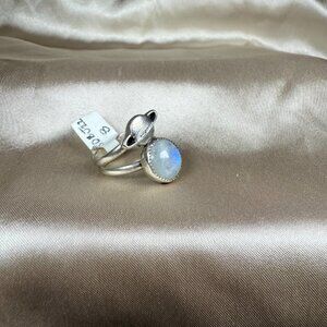 Handmade Silver Rainbow Moonstone and Saturn Planet Design Ring Jewelry Size 8