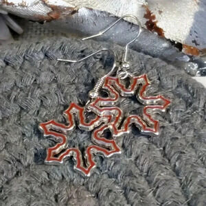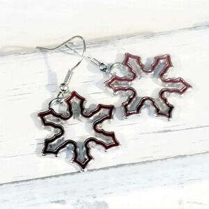 Handmade Silver Red Enameled Snowflake Drops Winter Christmas Holidays Earrings