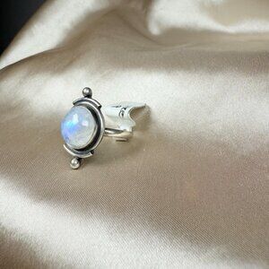 Rainbow Moonstone is cherished for its mystical glow, symbolizing intuition, balance, and new beginnings. Each stone is unique, reflecting light in a magical way, making this piece a wearable treasure of individuality and elegance. This handmade silver ring is not just jewelry—it’s a timeless statement of beauty and artisan craftsmanship.