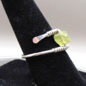 Handmade Silver Tone Wire Wrapped Peridot Ring Size 5.5 Raw Natural Gemstone