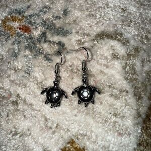 Charming silver turtle dangle earrings perfect for adding a playful touch to any outfit. Lightweight and easy to wear.