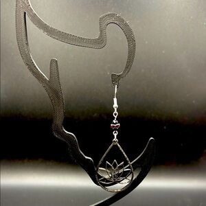 Elegant handmade earrings featuring a lotus design in silver and black. Perfect for adding a touch of sophistication to any outfit.