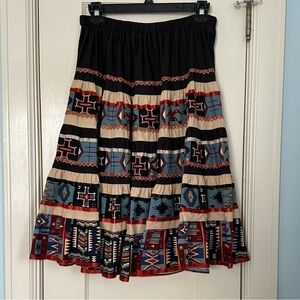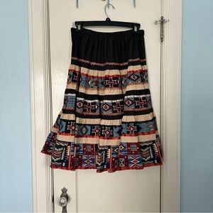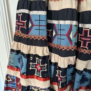Handmade Skirt Circle Aztec Black Cream & Turquoise Boho Tiered Maxi Size M